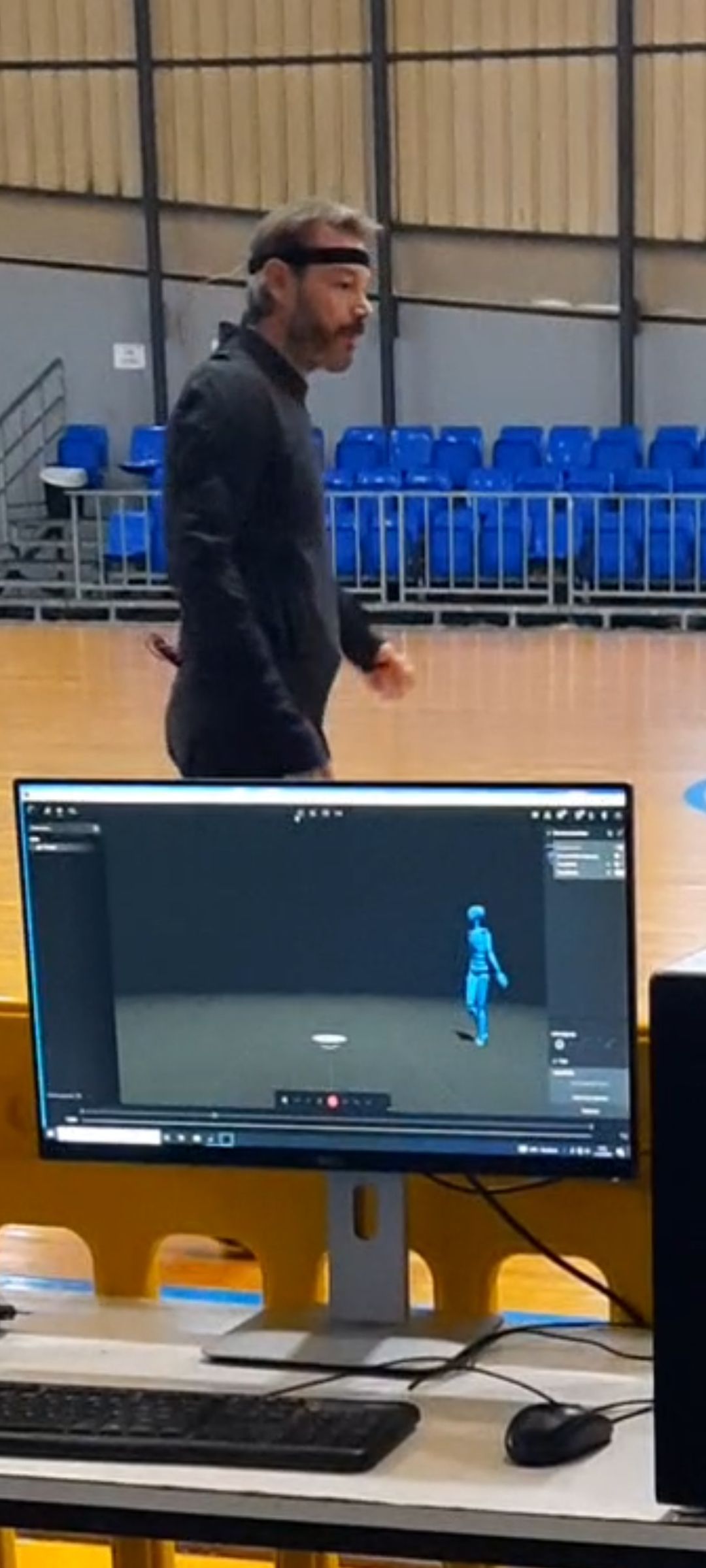 athletes they will put on the suit Motion Capture for perform the technical actions described in the stories , so that their movements are captured making the most correct technical gestures in the game.